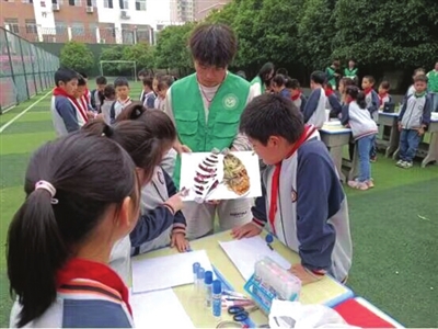 本报讯(记者傅辉 通讯员钱丹 刘家俊) 5月11日下午,湖北科技学院探寻生命奥秘之旅协会在市第五小学开展了“魅力校园 五彩自然——校园植物标本”健康教育主题活动。其活动意义是增强同学们的动手能力以及对标本的认知。用取于大自然的材料构造出葱蔚之肺,感受人与自然的紧密联系。