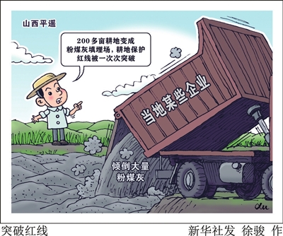 新华网消息 连日来,山西平遥200多亩耕地变成粉煤灰填埋场事件引发广泛关注。目前,当地已对事件关联企业负责人采取强制措施,对所涉及的土地进行复垦。记者实地调查发现,在两年多的时间里,涉事企业在耕地里填埋粉煤灰达113万多吨。当地土地主管部门监管不到位,耕地保护红线被一次次突破。