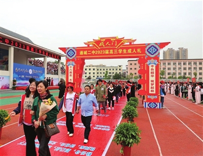 据了解,通城二中每年都会举行高三成人礼仪式,通过开展活动,帮助学生认识十八岁的重要转变及其意义,引导广大青少年树立正确的价值观,肩负起家庭、社会和强国的责任,使他们在学习中进步、在实践中成长,不断创造新的青春业绩。