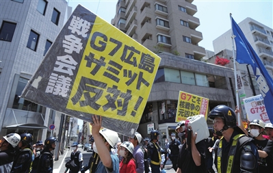 在日本及其他一些国家民众的抗议声中,为期3天的七国集团(G7)峰会21日在广岛市闭幕。当天,日本民众和其他一些国家民众再次在广岛市中心举行大规模集会游行,抗议七国集团峰会的召开。当游行队伍行进至市中心一处商业街附近时,抗议人士与警察发生冲突。记者在现场看到,数十名警察冲进人群强行按住几名年轻人,现场一片混乱,有鞋子和标语牌散落在地……十几分钟后,游行队伍再次出发,抗议人士一个挨一个挽起胳膊前行,以防被警察冲撞。