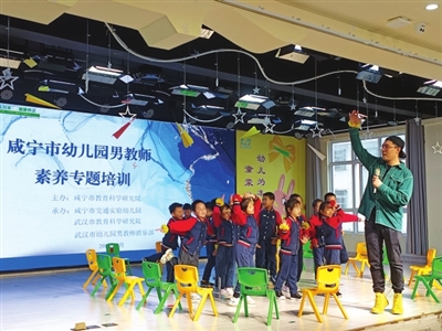 本报讯(记者熊大平 通讯员王攀)5月22日,咸宁市教科院组织开展了全市幼儿园男教师素养主题培训,邀请武汉市教科院相关专家及武汉市幼儿园男教师俱乐部,走进咸宁市交通实验幼儿园,为全市幼师开展教学展示及讲座,进一步提升男幼师的职业素养和专业能力,促进男幼师专业发展和职业认同感,助推学前教育教师队伍发展。
