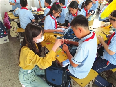 本报讯(记者夏咸芳 通讯员王凡 陈逸潇) 为弘扬中华民族勤俭节约的优秀传统,把环保节约的理念内化于心、外化于行,今年5月,咸宁市第五小学开展了“‘衣’然美丽——旧衣改造”节能环保教育主题活动。