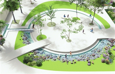 玉泉侧巷小游园将建设儿童友好设施、海绵化“小溪”水景、星光步道、共享花园、绿化景观和配套基础设施。建设中,遵循原有的圆形水井印记,将水从水杉边引流至圆形的边界,创造出多元水互动体验区;保留场地内高大水杉,增植一些遮荫乔木;原本杂乱无章的菜园,改建成四季花园。设计施工团队,将充分利用现有地下水、大水杉等资源,依托自然,打造出一处自然、有趣的亲水游园。