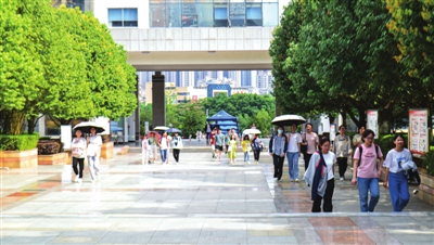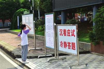 昨日下午,全市17个高考考点面向考生开放,让考生提前熟悉考试环境。图为考生在鄂南高中考点查看考场分布图。(记者 熊大平 毛亚轩)