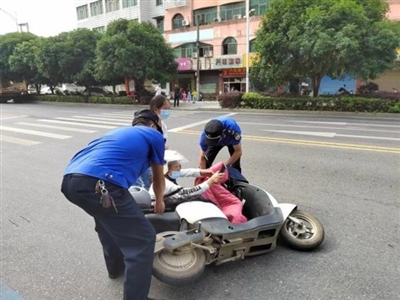 6月3日上午9时许,市城市管理综合执法三支队执法队员巡查至永安大道东门菜场附近,忽然听到“咣当”声响。城管队员循声望去,见两辆电动车相撞,一对母女被压在电动车下。