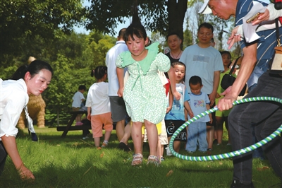 随后孩子们在爸爸妈妈的陪伴下共同参与当天的亲子游戏环节,“小兔跳圈”“魔幻方池”等趣味性十足的游戏项目让孩子们不仅领略到游戏带来的快乐,更体验到了相互协作的团队精神,感受到了父母陪伴的幸福。