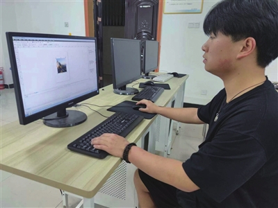 眼前这个憨厚内敛的大男孩连续两年被评为“学习标兵”,多次参加市级、省级比赛获奖。三年的中职学习让他脱胎换骨,可曾经的王泽健经历中考失利,走进中职,对自己的前途一片迷茫。在家长和老师的建议下,选择了平面设计专业。