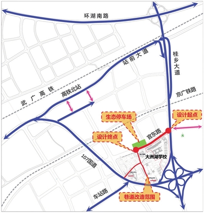 咸宁市大洲湖学校为全日制公办小学、初中,实行九年一站式优质教育模式,计划办学规模为3000人左右,计划今年8月竣工并完成验收交付。学校区域位置特殊,进出学校路径主要依托桂乡大道、107国道。学校的建成必将对这两条道的交通产生影响。官东路一期工程可缓解学校建成后交通拥堵问题。