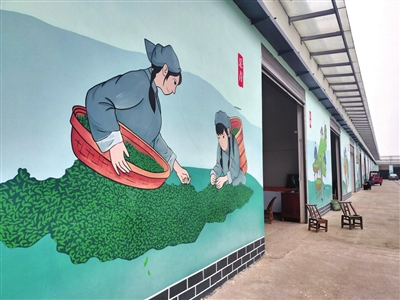 “你看,我们的市场现在不仅有颜值,还有内涵。”陈恢云热情地带着记者参观他们的“新家园”,入口处“茶叶大市场”高架框门楼建设显眼,绿化带内草坪和树木郁郁葱葱,立面墙体 上采茶、卖茶、制茶等茶叶生产场景与厂房融为一体,营造出“房在景中、景在房上”的视觉美景 ,增添了茶乡的诗情画意和乡土文化气息……改造后的“市场”俨然成为新的网红“打卡地”。