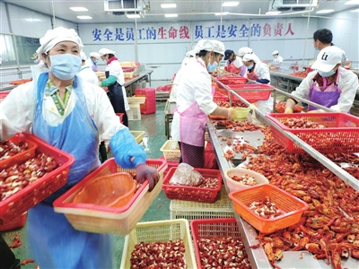 据悉,宇汇供销水产科技公司是我市首家小龙虾深加工企业,主要从事小龙虾交易、淡水鱼的收购和加工、销售、冷链物流及电子商务等。生产高峰期,该公司每日加工虾尾半成品8吨多,带动周边近300人务工增收。(记者 王奇峰 特约记者 但唐静 通讯员 周瑜)