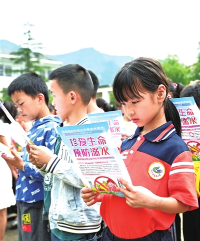 “不私自下水游泳,不擅自与他人结伴游泳,不在无家长或教师带领的情况下游泳,不到无安全设施、无救援人员的水域游泳,不到不熟悉的水域游泳,不到水边玩耍嬉戏或捉鱼摸虾,不擅自下水施救。”6月13日上午,在咸安区桂花镇白沙桥小学操场,20多名学生集体熟练地背诵着预防溺水“七不准”后,咸安区南川水库管理局局长周飞跃竖起大拇指点赞,并强调:“背诵重要,做到更重要。”