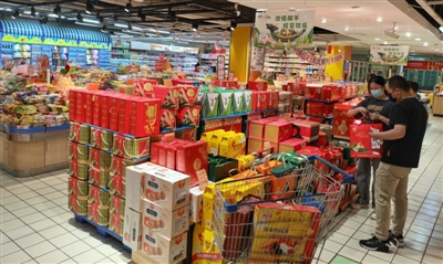 6月15日,市区中百仓储博仁店,礼盒装粽子等产品琳琅满目,市民正在选购。