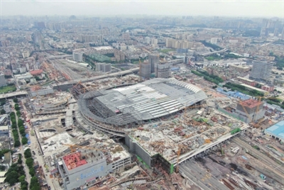 新华网消息 6月19日,中铁建工承建的广铁集团广州白云火车站正式封顶,标志着站房钢结构整体完工。车站“云山珠水、木棉花开”的外观造型初现,全面进入室内外装饰装修阶段。