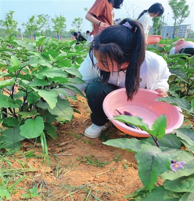 在研学基地教官的讲解下,同学们了解了蔬菜的生长特点、采摘方法,并分组进行采摘比赛。经过一番比试,大家收获了茄子、辣椒、土豆。同学们满怀收获的喜悦,进行了厨艺大比拼。