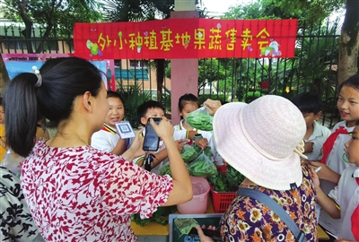本报讯(记者熊大平 通讯员钱依利 马翠) “卖菜啦,卖菜啦!大家快来买呀!我们自己种的蔬菜,没打药,纯绿色蔬菜,新鲜便宜又好吃的菜呀……”6月12日下午,咸安外国语实验小学门口热闹非凡,这是该校联合长寿校区的果蔬产品售卖会现场,稚嫩的叫卖声来自一群小学生。