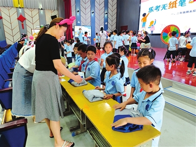 本报讯 (记者熊大平 通讯员徐娜) 为进一步把“双减”要求落到实处,减轻学生学业负担,改变学生的学业评价方式,培养学生对所学知识的综合运用能力。6月14至15日,咸宁高新实验外国语学校举行一、二年级“乐考无纸笔 闯关有童趣”无纸化考试活动。