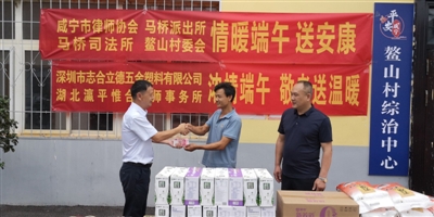 本报讯(记者傅辉 通讯员陈俊)“谢谢,谢谢!”6月20日上午,咸安区马桥镇鳌山村村民佘丰炎老人,收到爱心企业和律所送来的端午节礼物。