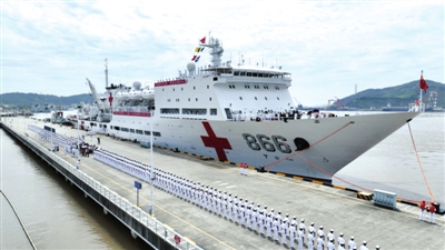 新华社电 3日上午10时,中国海军“和平方舟”号医院船从浙江舟山某军港码头解缆起航,远赴基里巴斯、汤加、瓦努阿图、所罗门群岛、东帝汶等5国执行“和谐使命-2023”任务。这是“和平方舟”号医院船第9次执行“和谐使命”任务,也是中国海军舰船首次访问基里巴斯、所罗门群岛并开展人道主义医疗服务。