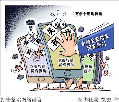 新华社电 记者4日从公安部获悉,网络谣言打击整治专项行动取得阶段性成效,截至目前,全国公安机关网安部门共侦办网络谣言案件1600余起,清理网络谣言信息42万余条,关停或禁言造谣传谣网络账号1万余个,并依法对造谣传谣网民进行查处。