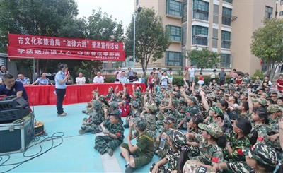 本报讯 (记者叶和平 通讯员李书静)7月7日,市文化和旅游局在咸安区浮山街道书台社区天洁锦书城小区开展“法律六进”普法宣传活动,给社区居民和未成年人上了一堂生动的文旅普法课。???