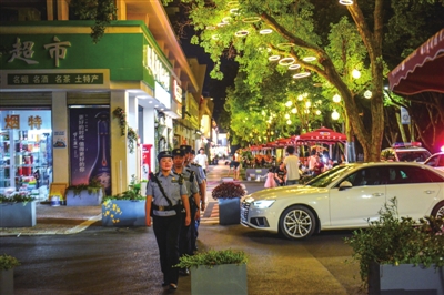 夏夜里,外出逛吃玩乐出行的市民发现,身边多了一队队全副武装的执勤民警,警用巡逻车辆穿梭往返,骑警小队深入背街小巷,警用车辆车载喇叭循环播放夏季治安巡查宣防语音信息。