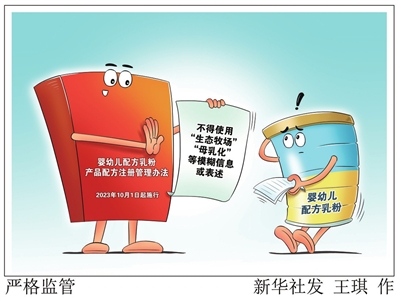 新华网消息 婴幼儿配方乳粉产品的标签、说明书中将不得含有“生态牧场”“母乳化”等模糊信息或表述。市场监管总局10日发布新修订的《婴幼儿配方乳粉产品配方注册管理办法》,自2023年10月1日起施行。