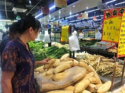 在一家蔬菜店,正在挑选的市民络绎不绝。“今年的价格比较实惠,现在吃也正是时候。”店主陈师傅介绍,今年的新藕于6月中旬开始上市,至今不过20天,价格却降得非常快,“现在最贵不超过5元一斤,与往年同期相比,至少便宜了3元一斤。”