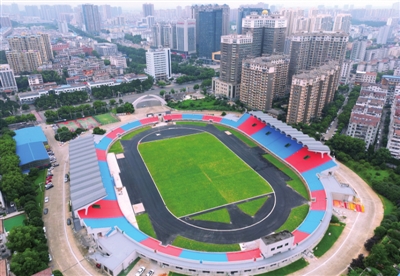 7月17日,记者在市体育中心看到,场内已经铺上翠绿的草皮,看台座位上做了红蓝相间的彩绘,整个体育中心焕然一新,即将完工。体育中心目前正在进行草皮养护,下一步将开始铺设塑胶跑道,预计本月底完工,8月份将向市民开放。 (记者 方达星 毛亚轩)