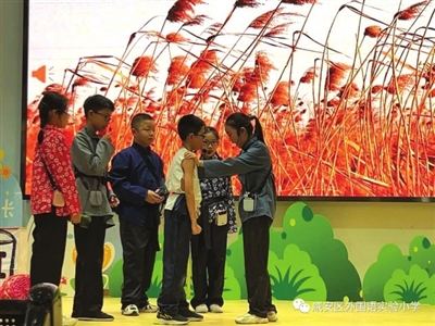 学校还积极开展主题鲜明的德育班会课,寓教于乐,在每个学生心上浇灌向上、向善的德育之花;每周一的“国旗下展示”,启迪着学生的心智,滋润着学生的心田;传统文化、社会主义核心价值观教育实践、经典诵读、节日教育、感恩教育等德育主题活动的实施,规范了学生的日常行为,推动学生养成良好的学习、生活习惯。丰富多彩的德育活动,像“润物无声”的春雨,陶冶学生的情操,塑造学生的人格,促进每个学生健康成长。