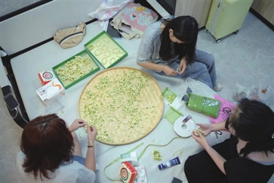 7月18日下午2点,福州市仓山区一处城郊民宿内,李慧敏、万梦圆、熊乙蔚三名来自湖北科技学院的女大学生正在聚精会神编制茉莉花手环。作为参加湖科生存大挑战活动福州分队的三名女生,这份手工作品承载着她们的莫大期望。