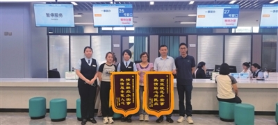 本报讯(通讯员 张燕燕 杨志)“赤壁市不动产登记中心工作人员办事高效、全心为民,为你们点赞。”7月7日,市民彭女士将两面锦旗送到不动产登记中心窗口,对不动产登记中心工作人员在为她办理二手房转移登记过程中优质、便捷、高效、热情的服务表示感谢和肯定。