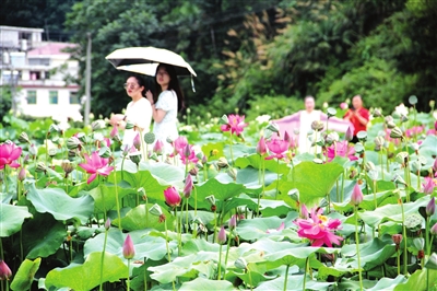 本报讯(记者 王奇峰 通讯员 邓星星 聂迅) “哇,真美!快帮我拍一张!”7月18日,通山县南林桥镇石门村荷花基地上,一波又一波游客前来赏花“打卡”。