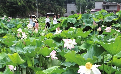 入夏以来,石门村的百亩荷花陆续开放,或粉或白或红,荷花风姿绰约,荷叶迎风摇曳,荷叶碧绿相间,淡雅荷香扑鼻而来。微风拂过,荷花左右摇曳,仿佛仙子翩翩起舞。盛开的荷花与四周的青山绿水相映成趣,吸引游客驻足观赏,拍照留念。