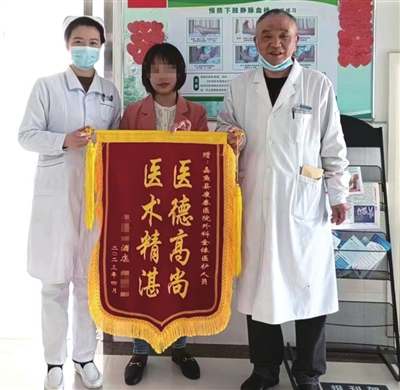 该患者在术后出院第一时间,便委托家属向康泰外科医护团队送上了一面鲜红锦旗以示感谢。