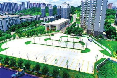 不仅如此,在门球馆东北角,一个大型生态停车场已经建成,配套停车场面积有6800平米,设有大巴车位27个,小车车位123个。