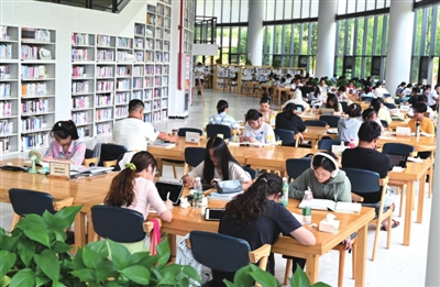 连日持续高温,在咸宁市图书馆,不少市民和学生纷纷来到这里,在安静、舒适、凉爽的环境中享受阅读的乐趣,感受书香带来的“清凉”。 (记者 赵忠志)