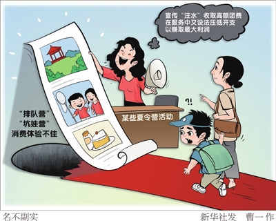 业内人士反映,随着夏令营市场火爆,越来越多机构想从中快速分一杯羹,宣传“注水”收取高额团费,在服务中又设法压低开支,以赚取最大利润。