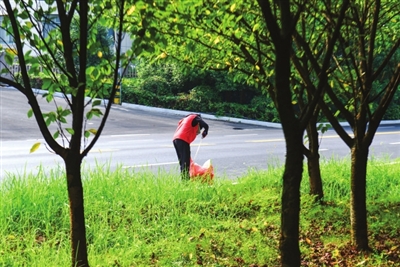 当天上午,志愿者们冒着酷暑,一手拿着夹子,一手拎垃圾袋,沿着北洪港徒步5公里左右,捡起河道两岸的废纸、垃圾袋、水瓶等各色垃圾。清理过程中,志愿者们还向河岸游客宣传环境保护知识,提议游客一同保护环境,不乱扔垃圾。