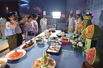 婚博会现场,宾客们欣赏了由武汉模特队8名模特(含2名外籍模特)带来的中式、西式婚礼秀,融入中式、西式两对新郎新娘表演者的倾情演绎,让准新郎新娘心里有机会提前进行婚礼“彩排”;御湾酒楼的婚宴特色菜品、招牌菜由美丽端庄的8名服务员,向宾客一一展示,主持人同步介绍宴会菜品的特色及文化;咸宁御湾酒楼行政总厨李建华,率领粤菜大师刘丛生、广式烧腊大师盛海洲、湘菜大师卢福禄和湖北楚菜大师陈伟伟组成的厨师长团队亮相,他们从厨20余年,分别精通川、湘、楚、粤等菜系菜肴的烹制,多次在全省全国获得烹饪比赛大奖,被授予“楚菜大师”、“中国烹饪大师”等荣誉称号。