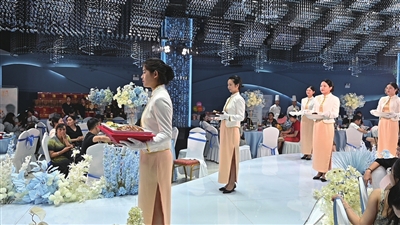“通过这场婚博会,让我们知晓有新的、好的、超级的婚礼堂可以使用,让新人们提前感受到仪式感满满的婚礼仪式。今天孩子们就高兴地预签了婚礼协议,我们采用了御湾婚礼艺术中心提供的一站式服务。”8月19日下午,在御湾酒楼婚博会现场,一位准新人的母亲感到欣喜,高兴地对记者说。