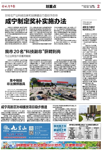 咸宁制定奖补实施办法