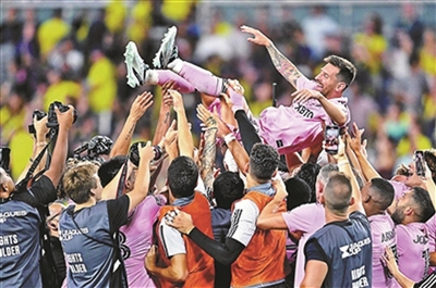 本报综合消息 8月20日,迈阿密国际在北美联赛杯决赛中通过点球大战以总比分10比9战胜纳什维尔,获得冠军,赢得了队史第一座冠军奖杯。梅西也因此而获得了他职业生涯的第44个冠军,超越了阿尔维斯成为职业足球历史夺冠次数榜榜首球员。