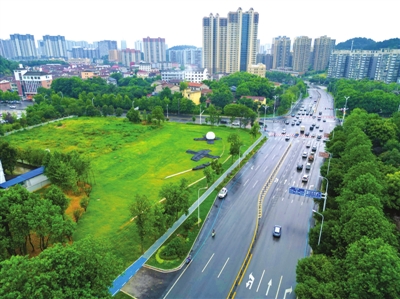 昨日,记者在市区桂乡大道与永安大道交汇处的双泉小游园看到,雨后,新建好的小游园绿意盎然,弧形灯带挡墙新颖醒目。