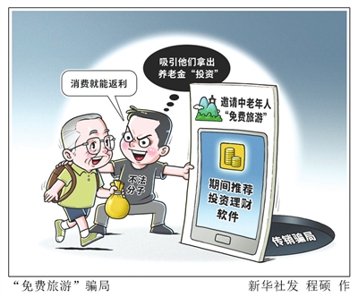 邀请中老年人“免费旅游”,期间推荐投资理财软件,吸引他们拿出养老金“投资”,宣称消费就能返利,成为“高级会员”可以“躺着赚钱”……