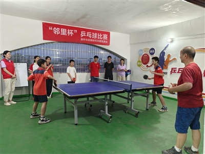 前不久,金叶社区组织居民在乒乓球活动室举行了“邻里杯”乒乓球比赛,吸引了小区不少乒乓球爱好者参与。