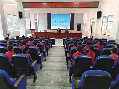 本报讯(通讯员 陈浩 高鑫) 为营造校园“学法、懂法、守法”的良好氛围,提高学生的法律素养和法治意识,全力构建和谐文明校园。9月14日上午,咸宁市第四小学特邀咸安公安分局蔡明远警官到校开展校园综合安全专项讲座。