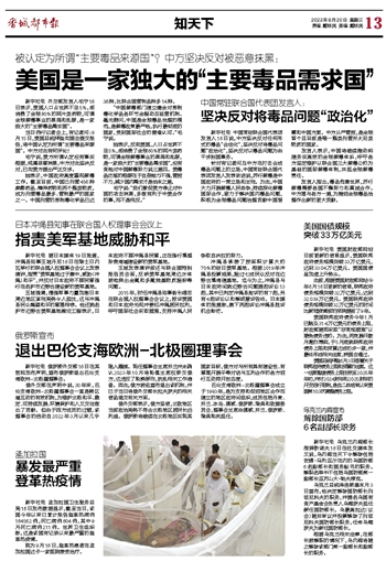 中国常驻联合国代表团发言人:坚决反对将毒品问题“政治化”