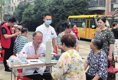 本报讯(记者 王奇峰 通讯员 周真真)“大娘,您血糖有点高,吃早餐了吗?几点吃的?这样,明天您去镇卫生院找我,我再给您测测,记得要空腹的嘞!”9月12日,赤壁市赵李桥镇赵李桥社区聚祥花园小区内,来自镇卫生院的医生正在为居民义诊。