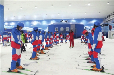 9月23日上午,在际华冰雪·香城滑雪馆,同学们领取相应的滑雪设备进入滑雪场地,经过滑雪教练的入门培训后,迫不及待地走上“魔毯”,准备体验滑雪。从初级滑道起点的犹豫,到冲向终点的畅快,这是他们难得的滑雪“初体验”。