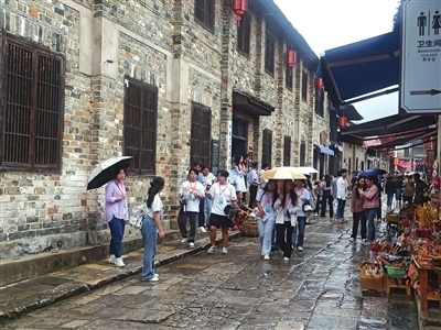 9月24日,大学生们先后前往羊楼洞明清石板街和三国赤壁古战场,体验咸宁的砖茶文化、三国文化。